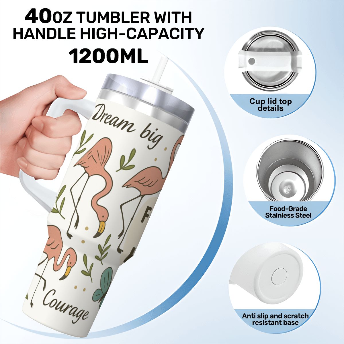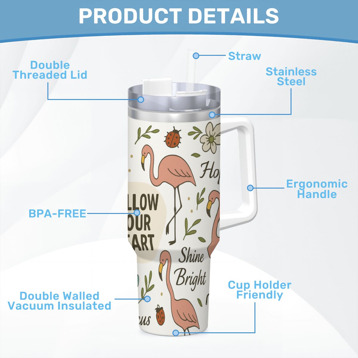 Let your day flow with purpose and positivity. This stylish stainless steel tumbler features a convenient handle, reusable straw, and a large 40 oz capacity—perfect for busy mornings, workdays, travel, errands, and everyday use.