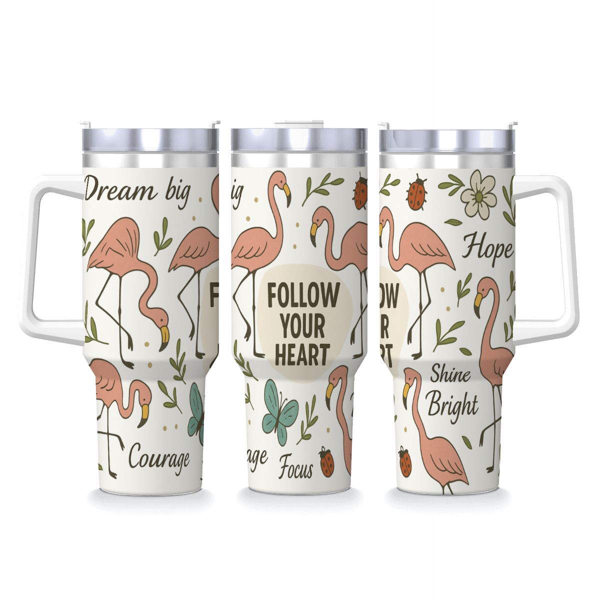 Follow Your Heart 40 oz Inspirational Tumbler with Handle & Straw