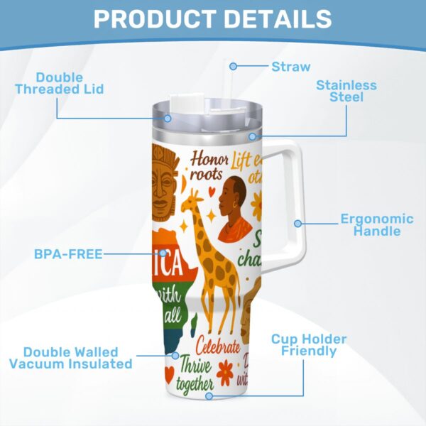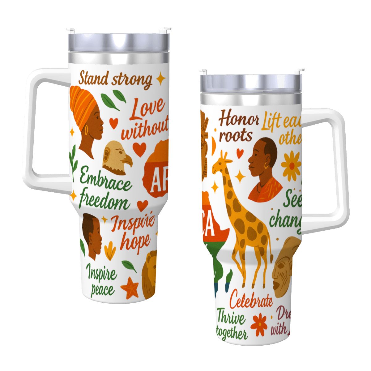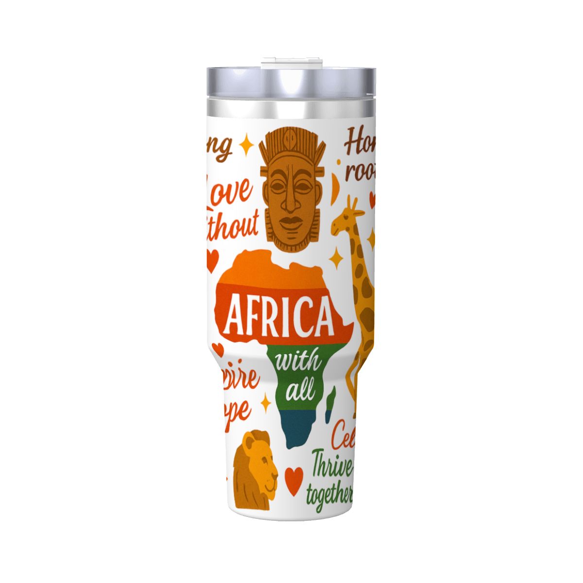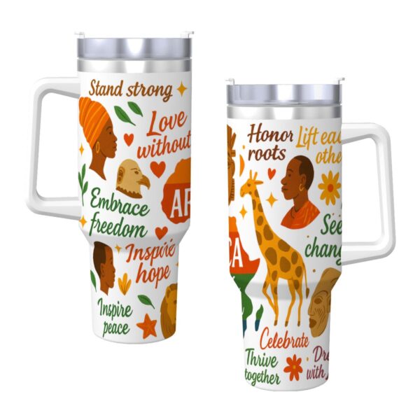 Inspirational – 40oz Travel Mug Stainless-Steel with Handle & Straw – AFRICA WITH ALL