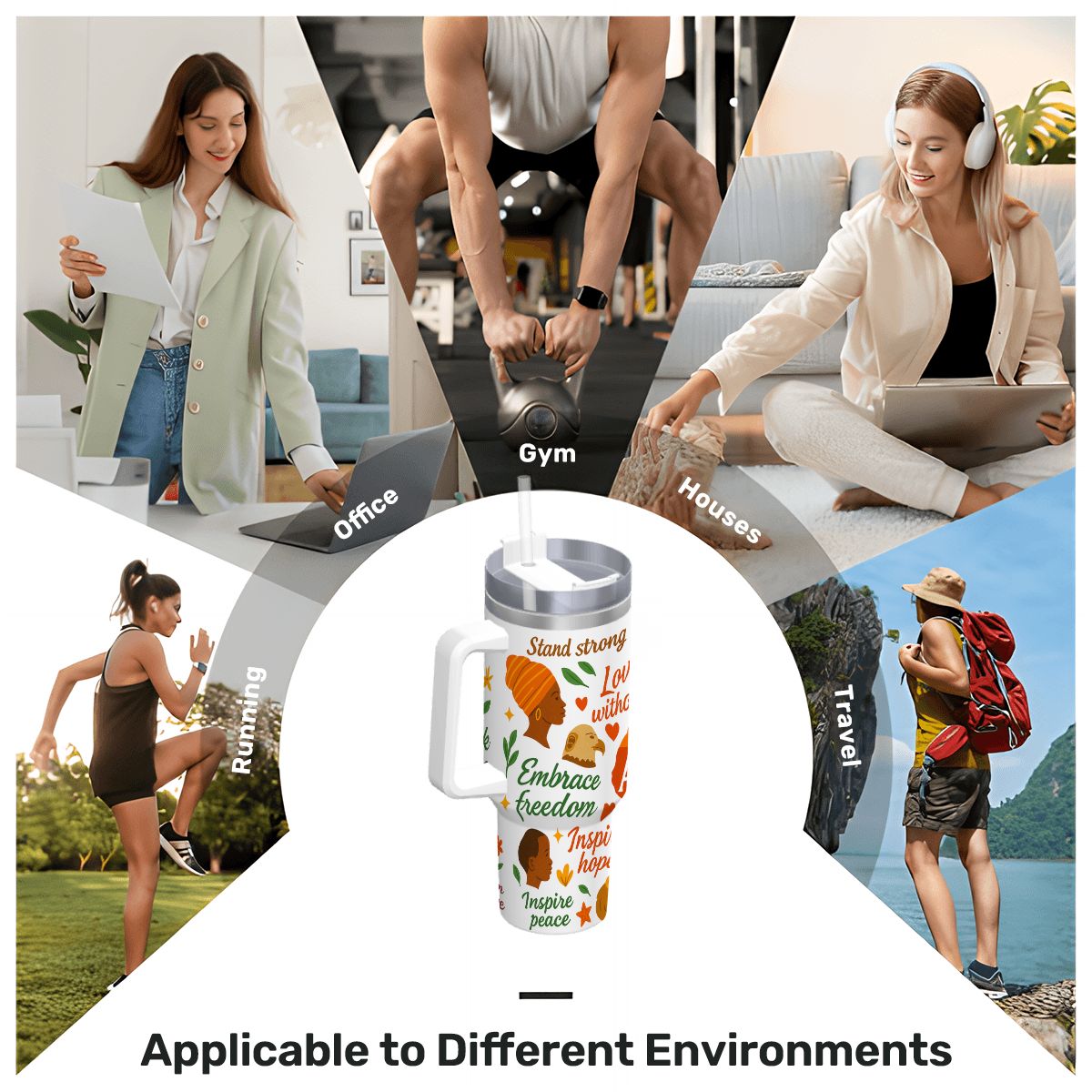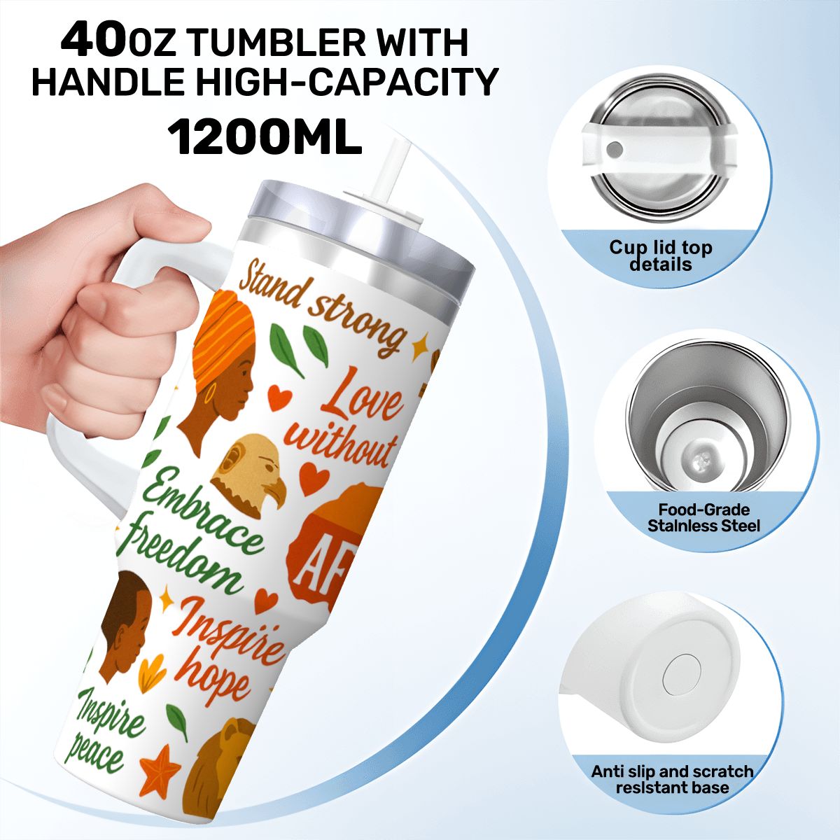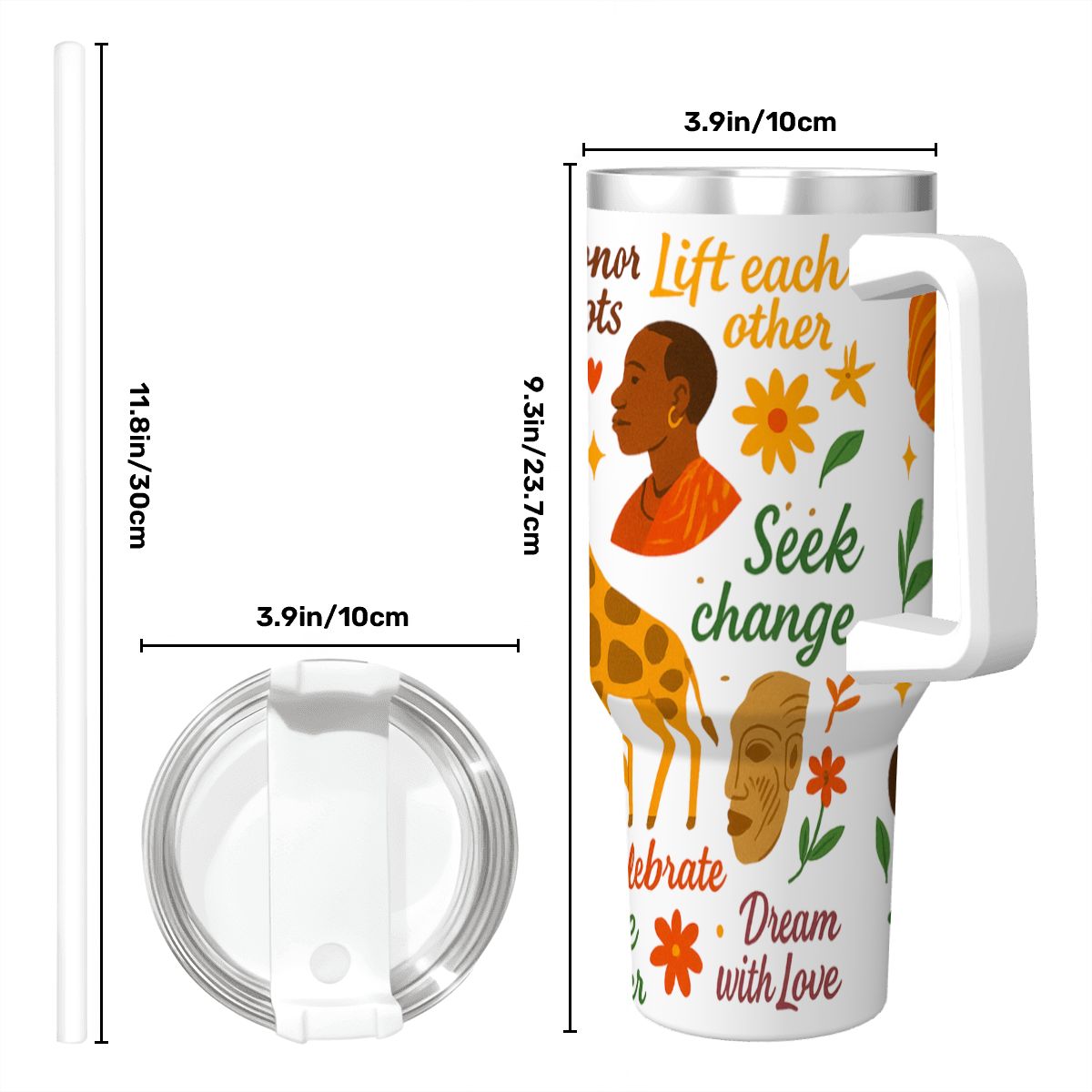 Inspirational – 40oz Travel Mug Stainless-Steel with Handle & Straw – AFRICA WITH ALL