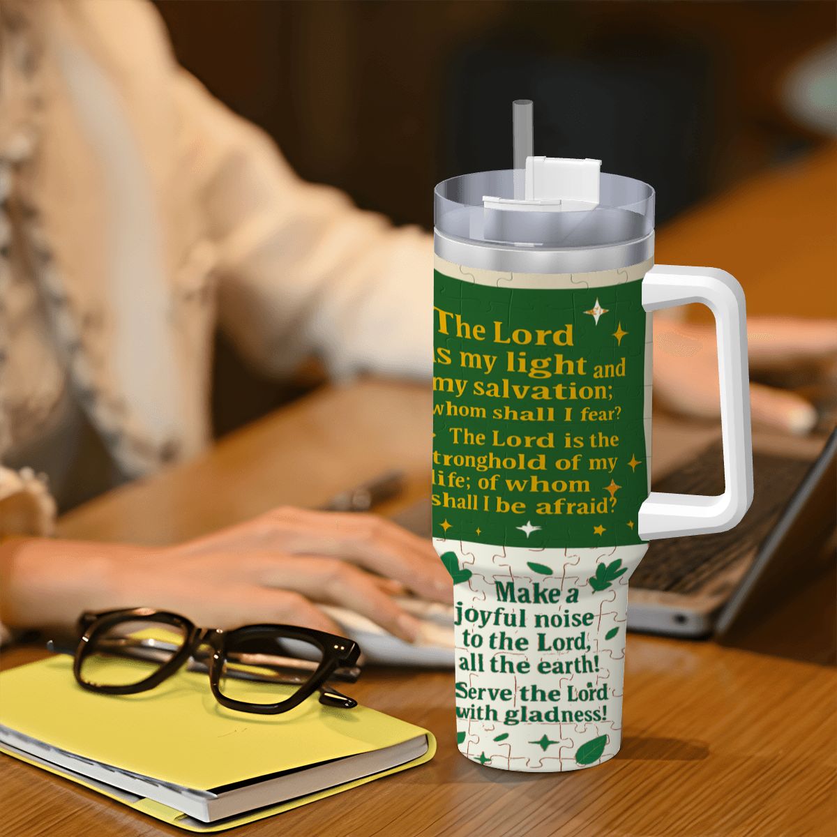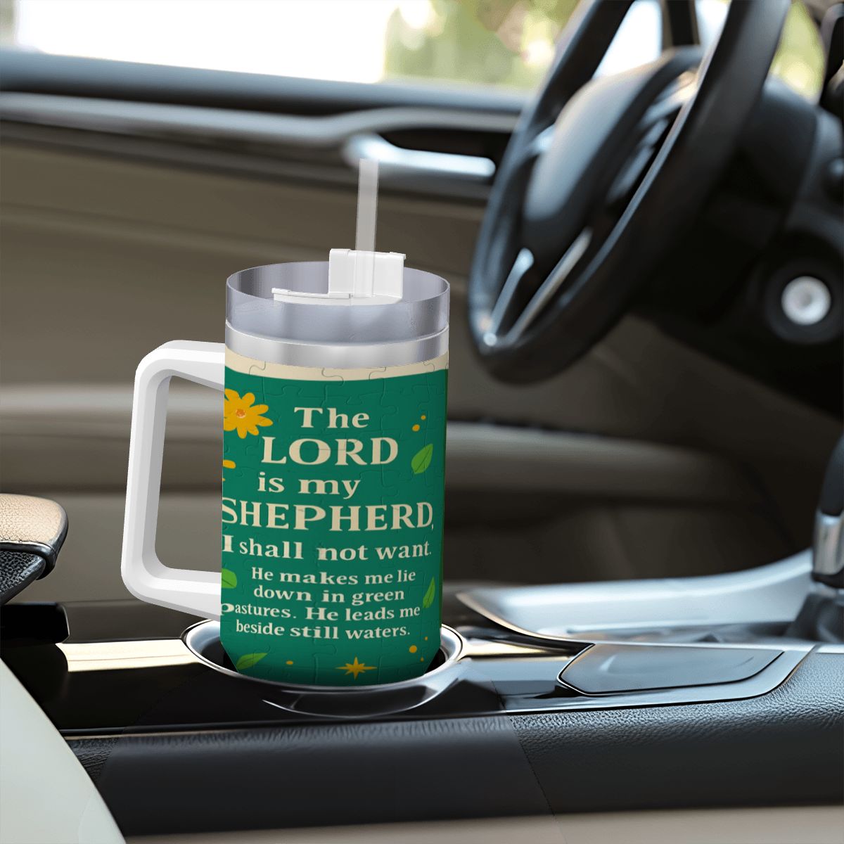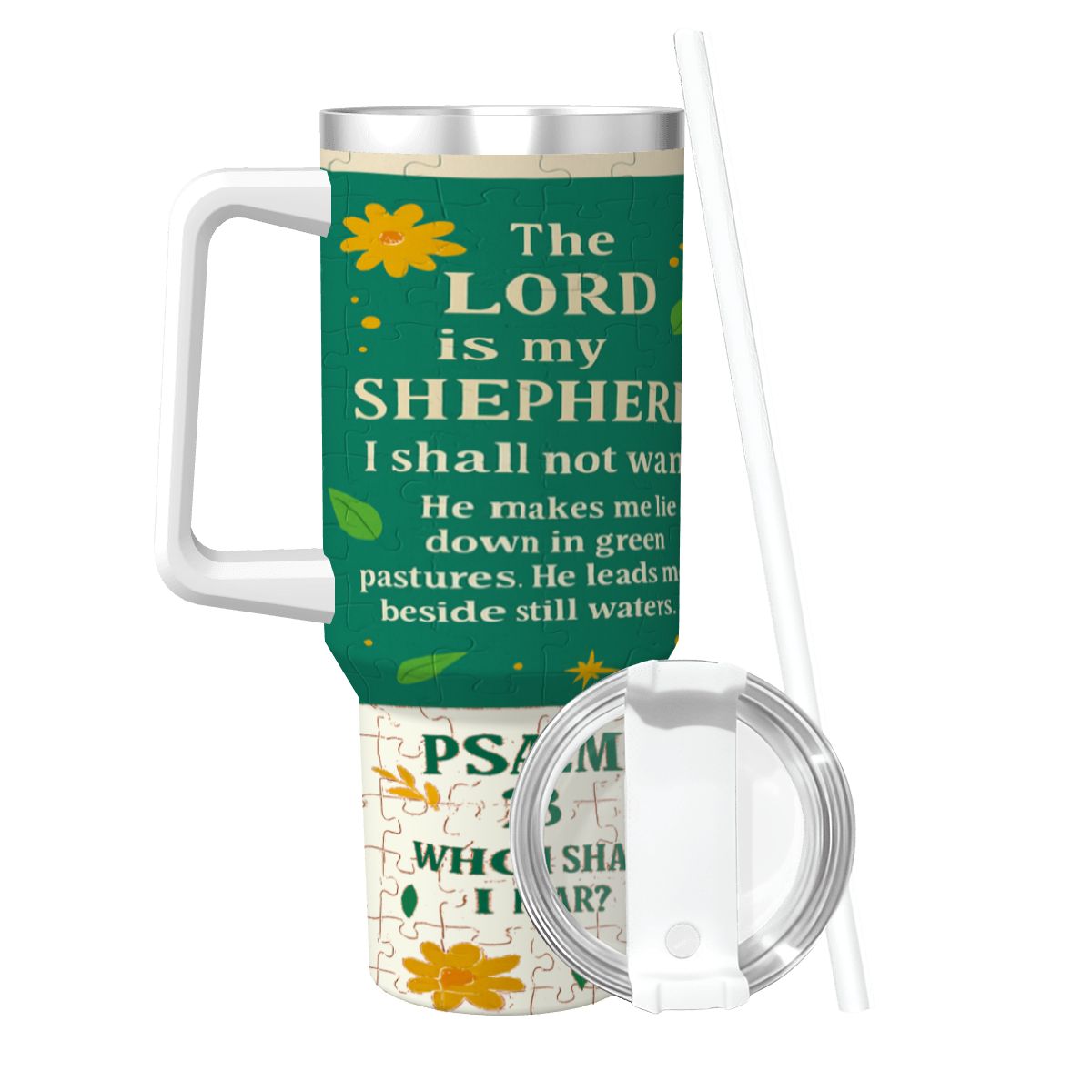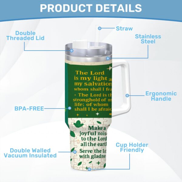 Inspirational – 40oz Travel Mug Stainless-Steel with Handle & Straw – PSALM VERSES