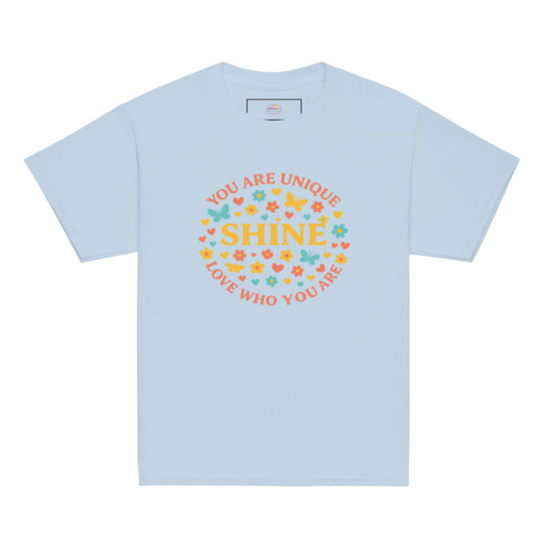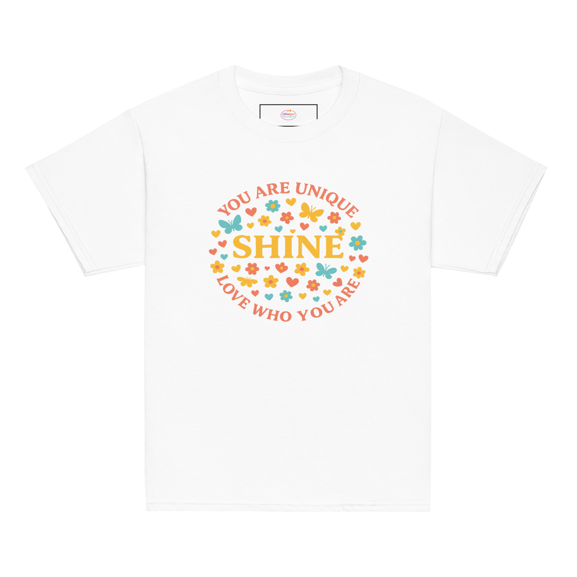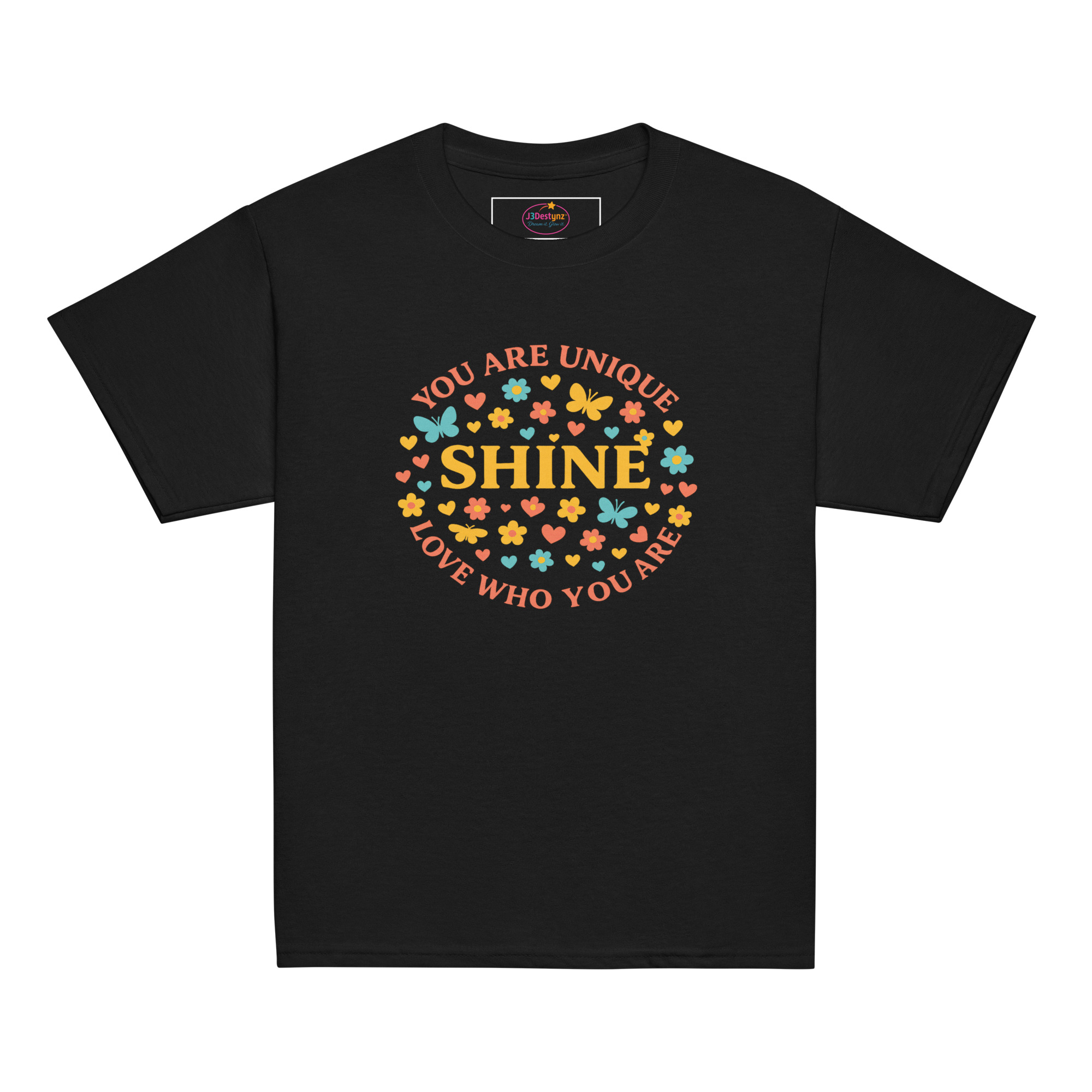 The Shine Youth T-Shirt is more than just a wardrobe staple — it’s a reminder that their light matters. Designed to inspire confidence and self-expression, this tee encourages kids to stand tall, be proud, and shine wherever they go.